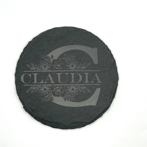 💢Schiefer-Untersetzer mit Lasergravur "Monogramm" - Die perfekte Geschenkidee!